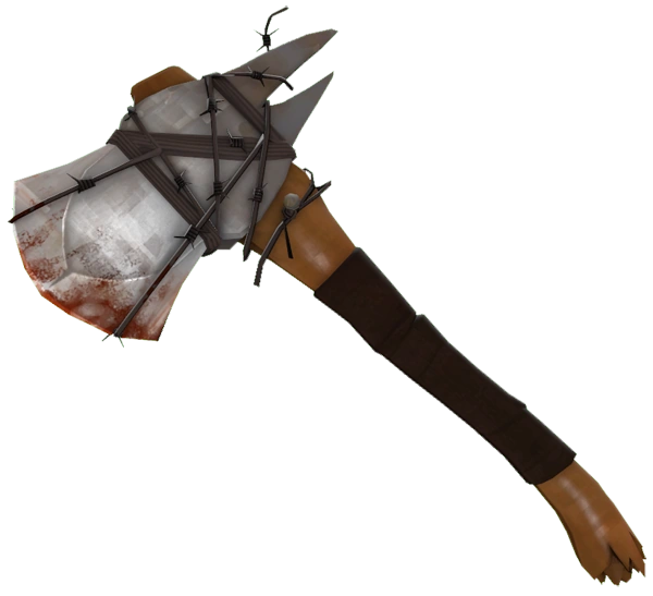 The Axtinguisher is an unlockable melee weapon for the Pyro in Team Fortress 2. It is an unlockable replacement for the default Fire Axe. Its appearance is that of a Fire Axe that has a few noticeable changes. Its wooden handle has been broken, and the axe head is wrapped with barbed wire. It minicrits burning players on hit then extinguishing them. The damage of the hit increases based on how much afterburn is left. On kill it grants a speed boost. At the cost of these stats it has a 33% damage reduction compared to stock doing 44 damage instead of 65 and it has a 35% slower holster speed. These stats make it so it's good for finishing of enemy's you set on fire. It's also good for combos ideal with the [1]Degreaser, [2]Dragon's Fury, [3]Flare Gun and the [4]Detonator. What is lacks is consistency the [5]Fire Axe does better, as well as being better to fight enemy pyros . Despite this, the Axtinguisher is still an excellent melee for [6]Pyro